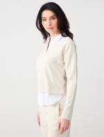 • Bayan Bej Gömlek Yaka Uzun Kollu Modal Örme Sweatshirt