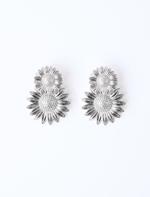 • Bayan Gri İkili Çiçek Figürlü Parlak Küpe