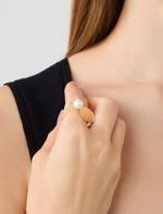 • Bayan Sarı İnci Detaylı Asimetrik Yüzük