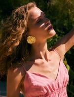 • Bayan Sarı Işıltılı Çiçek Figürlü Küpe