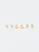 • Bayan Sarı Kalp Detaylı Parlak Taşlı Küpe Seti