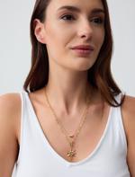 • Bayan Sarı Kalp ve Yıldız Figürlü Çok Zincirli Kolye