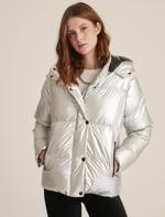 • Bayan Gri Kapüşonlu Parlak Puf Mont