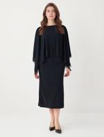Siyah Kayık Yaka Truvakar Kol Örme Midi Elbise