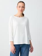 • Bayan Beyaz Kayık Yaka Truvakar Kol Rahat Kesim Örme Tişört