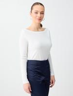 • Bayan Beyaz Kayık Yaka Uzun Kollu Basic Örme Bluz