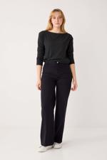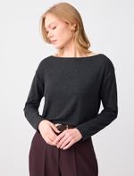 • Bayan Antrasit Kayık Yaka Uzun Kollu Yumuşak Dokulu Örme Bluz