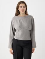 • Bayan Antrasit Melanj Kayık Yaka Uzun Kollu Yumuşak Dokulu Sweatshirt