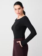 • Bayan Siyah Kayık Yaka Yumuşak Dokulu Uzun Kollu Örme Bluz