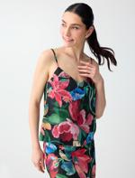 • Bayan Siyah Keten Karışımlı Çiçek Desenli V Yaka Dokuma Bluz