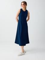 • Bayan Lacivert Keten Karışımlı Yuvarlak Yaka Kolsuz Midi Elbise