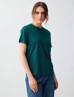 • Bayan Koyu Yeşil Kısa Kollu Bisiklet Yaka Modal Örme Tişört