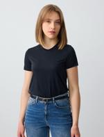 • Bayan Lacivert Kısa Kollu Bisiklet Yaka Modal Örme Tişört