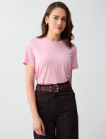 • Bayan Pembe Kısa Kollu Bisiklet Yaka Modal Örme Tişört