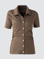 Haki Kısa Kollu Gömlek Yaka Dar Kesim Dokuma Bluz