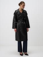 • Bayan Siyah Kruvaze Yaka Dar Kesim Uzun Deri Trençkot