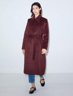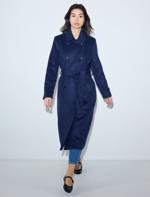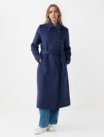 • Bayan Lacivert Kruvaze Yaka Kemer Detaylı Kaşe Kaban