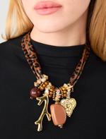 Kahverengi Leopar Desenli Çoklu Charm Detaylı Kolye