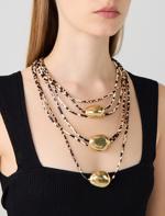 • Bayan Kahverengi Leopar Desenli Parlak Metal Figürlü Kolye