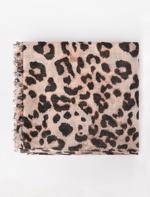 Ekru Leopar Desenli Püsküllü Dokuma Şal