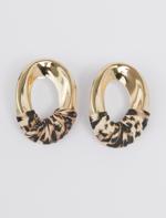 • Bayan Sarı Leopar Desenli Zarif Halka Küpe