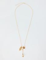 Sarı Metal Figürlü İnci Detaylı Ayarlanabilir Kolye