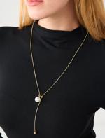 • Bayan Sarı Metal Top Figürlü İnci Detaylı Ayarlanabilir Kolye