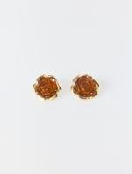 Kahverengi Minimal Çiçek Figürlü Küpe