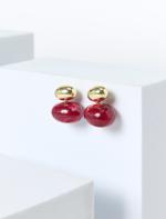 • Bayan Kırmızı Modern Oval Figürlü Küpe