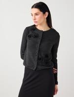 • Bayan Antrasit Melanj Nakış Detaylı Yumuşak Dokulu Örme Hırka