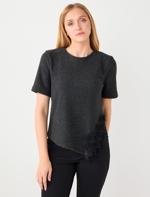 Antrasit Melanj Nakış İşlemeli Yumuşak Dokulu Örme Bluz