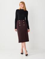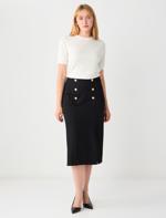 • Bayan Siyah Normal Bel Düğme Detaylı Örme Midi Etek