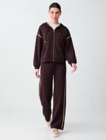 • Bayan Kahverengi Normal Bel Normal Paça Çizgili Örme Jogger Pantolon