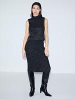 Siyah Normal Bel Pamuklu Midi Triko Etek