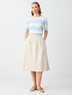 • Bayan Bej Normal Bel Rahat Kesim Dokuma Midi Etek