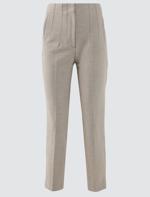 • Bayan Bej Melanj Normal Paça Yüksek Bel Düz Kesim Dokuma Pantolon