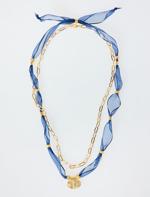Lacivert Oval Metal Figürlü İkili Ayarlanabilir Kolye