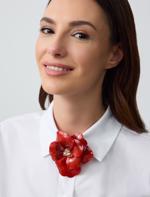 • Bayan Kırmızı Parlak Çiçek Figürlü Taşlı Broş