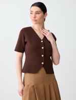 • Bayan Kahverengi Parlak Düğme Detaylı Kısa Kollu Triko Yelek