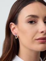 • Bayan Mavi Parlak Taşlı Çiçek Figürlü İncili Küpe