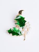 • Bayan Yeşil Parlak Yaprak Figürlü İncili Broş