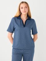 • Bayan Lacivert Polo Yaka Kısa Kollu Geometrik Desenli Örme Bluz
