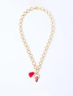 Sarı Püskül Detaylı Kalın Zincir Kolye