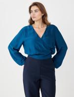 • Bayan Koyu Yeşil Rahat Kesim Anvelop Yaka Uzun Kollu Dokuma Bluz
