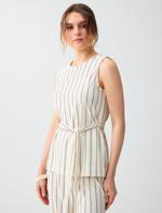 • Bayan Ekru Rahat Kesim Bisiklet Yaka Çizgili Kolsuz Örme Bluz