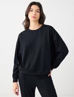 • Bayan Siyah Rahat Kesim Bisiklet Yaka Modal Örme Sweatshirt