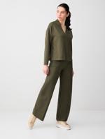 Haki Rahat Kesim Bol Paça Yüksek Bel Uzun Örme Pantolon