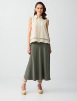 Koyu Yağ Yeşili Rahat Kesim Cep Detaylı Normal Bel Midi Etek