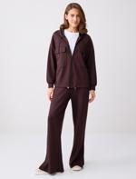 • Bayan Kahverengi Rahat Kesim Kapüşonlu Modal Örme Ceket