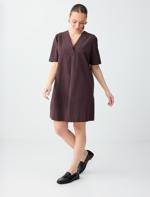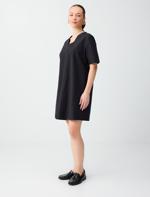 • Bayan Siyah Rahat Kesim Kısa Kollu V Yaka Dokuma Mini Elbise